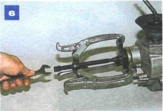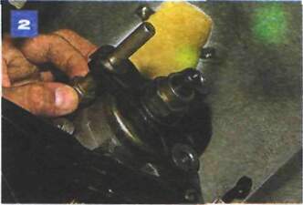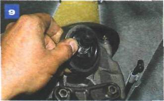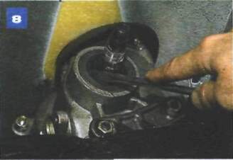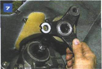 Замена сальника вторичного валаРаботу проводим на смотровой канаве или подъемнике. Снимаем карданный вал (см. «Снятие карданной передачи» ). ![]() Снимаем резиновое центрирующее кольцо. ![]() Стопорим фланец от проворачивания, вставив в его отверстие болт крепления эластичной муфты. ![]() Головкой «на 30» отворачиваем гайку крепления фланца... ![]() ...и снимаем ее (гайка устанавливается на резьбовой герметик). ![]() Снимаем шайбу (она установлена выпуклой стороной к гайке). ![]() Снимаем фланец трехзахватным съемником (для наглядности фото сделано на демонтированной коробке). Фланец также можно сбить при помощи длинной выколотки из мягкого металла. ![]() Снимаем фланец. ![]() Поддев отверткой сальник вторичного вала,... ![]() ...снимаем его. Смазав рабочую поверхность сальника тонким слоем смазки Литол-24, запрессовываем его подходящим отрезком трубы. Снятые детали и узлы устанавливаем в обратной последовательности. |