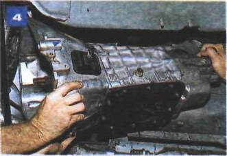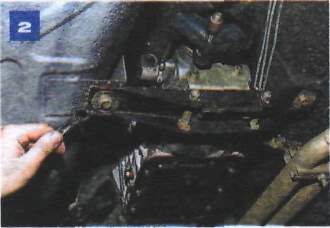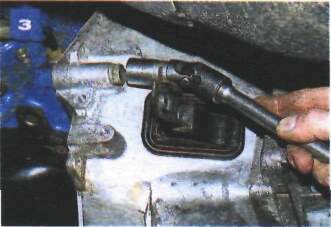 Снятие коробки передачРаботу проводим на смотровой канаве или подъемнике. Отсоединяем провод «массы» от аккумуляторной батареи. Отсоединяем провода от выключателя фонарей заднего хода (см. «Замена выключателя фонарей заднего хода» ). На автомобиле с механическим спидометром отсоединяем от редуктора его привода гибкий вал (см. «Снятие гибкого вала привода спидометра» ). Если автомобиль укомплектован комбинацией приборов с электронным спидеметром, то отсоединяем разьем датчика скорости (см. «Снятие привода спидометра» ). Отворачиваем два болта крепления рабочего цилиндра сцепления к картеру сцепления (см. «Снятие рабочего цилиндра гидропривода сцепления на автомобиле с двигателем ВАЗ-2106» ) и отводим цилиндр вперед, не разъединяя гидропривод. Снимаем кожух пола (см. «Снятие кожуха пола») и воздуховод подачи воздуха в заднюю часть салона (см. «Снятие воздуховода подачи воздуха в заднюю часть салона» ). Снимаем защитную крышку привода переключения передач и стержень рычага переключения передач (см. «Снятие и установка коробки передач на автомобиле с двигателем УМПО-331» , фото 1-3 и 10-11). Отворачиваем болты крепления стартера к картеру сцепления (см. «Снятие и разборка стартера 35.3708» ). Снимаем карданную передачу (см. «Снятие карданной передачи» ). ![]() Ключом «на 10» отворачиваем четыре болта крепления крышки картера сцепления. Отсоединяем кронштейн приемной трубы от кронштейна, закрепленного на картере коробки передач (см. «Снятие приемной трубы на автомобиле с двигателем ВАЗ-2106» ). Подставляем под картер коробки передач регулируемый упор (или домкрат). ![]() Накидным ключом «на 14» отворачиваем два болта крепления поперечины задней опоры силового агрегата к кронштейнам пола. ![]() Головкой «на 19» с карданным шарниром и удлинителем отворачиваем четыре болта крепления картера сцепления к блоку цилиндров двигателя. Аккуратно сдвигаем коробку передач вместе с картером сцепления назад, выводя ее первичный вал из ступицы ведомого диска сцепления,... ![]() ...и снимаем коробку передач. При снятии и установке коробки передач нельзя опирать первичный вал коробки на лепестки нажимной пружины сцепления, чтобы их не повредить. Устанавливаем коробку передач в обратной последовательности. Перед установкой наносим тонкий слой смазки ШРУС-4 на шлицевой конец первичного вала. После установки коробки регулируем свободный ход толкателя вилки выключения сцепления (см. «Регулировка привода выключения сцепления» ). |